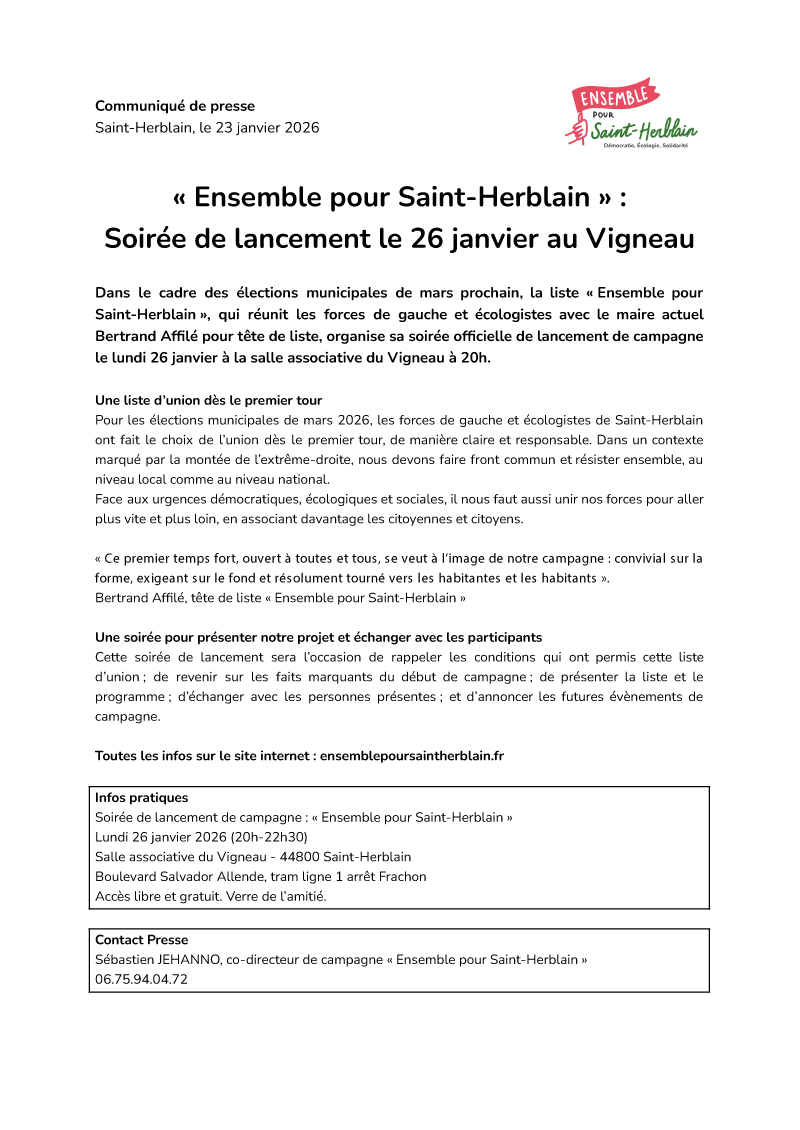 Ensemble pour Saint-Herblain dans la presse